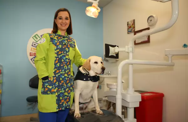 La querida mascota trabaja con el consultorio Parque Dental y es conocida como un miembro importante del equipo, especialmente cuando se encuentra con niños que muestran signos de estrés y nerviosismo.