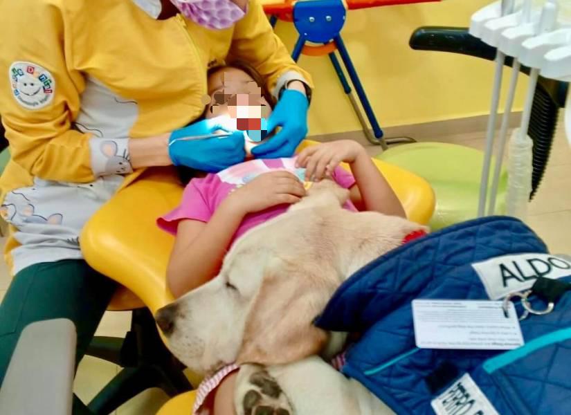 Lo anterior, gracias a la ayuda del cachorro asistente llamado Aldo que ha estado ayudando a los niños a sentirse más cómodos durante sus citas, acurrucándolos y calmándolos mientras reciben su tratamiento.