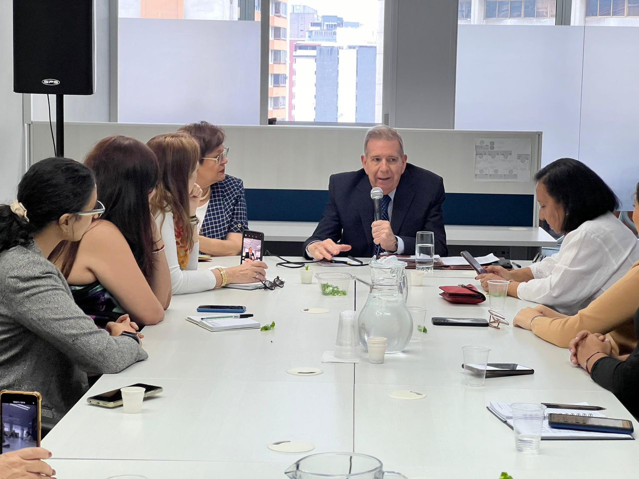 Edmundo González se reunió hoy con un grupo de mujeres representantes del «Frente Amplio de Venezuela» en una reunión que abordó temas fundamentales para la situación actual del país. Durante el encuentro, se discutieron asuntos como la búsqueda de soluciones para los desafíos que enfrenta Venezuela. Las representantes del «Frente Amplio de Venezuela» expresaron sus preocupaciones y propuestas, mientras que Edmundo González escuchó atentamente y compartió su visión sobre el camino a seguir para alcanzar un futuro próspero.