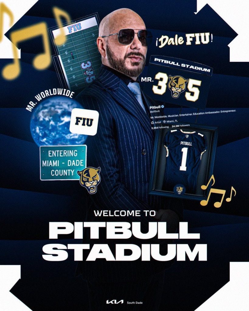 La Universidad Internacional de Florida (FIU), en Miami, anunció este martes un acuerdo con el cantante y empresario cubano estadounidense Pitbull para que éste se convierta en el nuevo nombre de su estadio de fútbol americano, que a partir de ahora pasa a llamarse Pitbull Stadium.