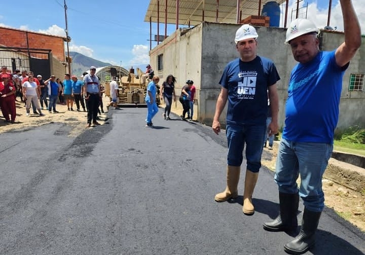 El gobernador Jehyson Guzmán junto al alcalde del municipio Campo Elías (Ejido) Simón Figueroa realizaron una inspección al asfaltado en la comunidad de El Moral, en la parroquia Matriz de Ejido.