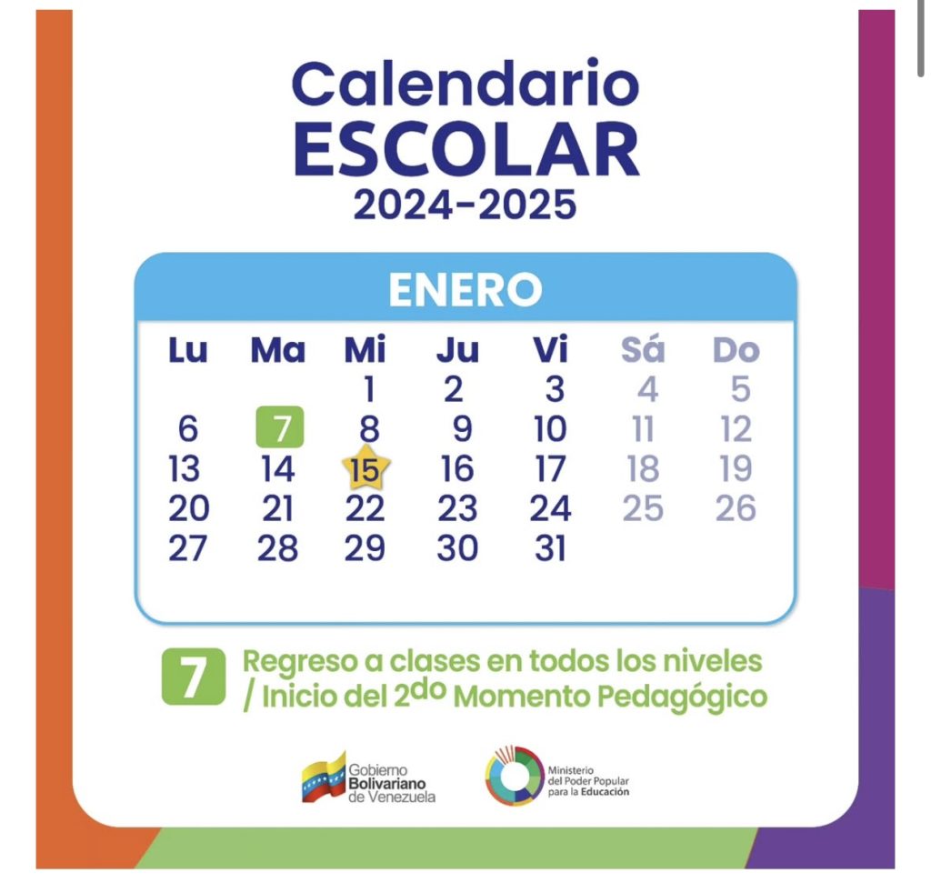 Además, Rodríguez compartió en sus historias de Instagram el cronograma escolar del periodo 2024-2025 en el que recordó el 15 de enero como el Día del Maestro en Venezuela.