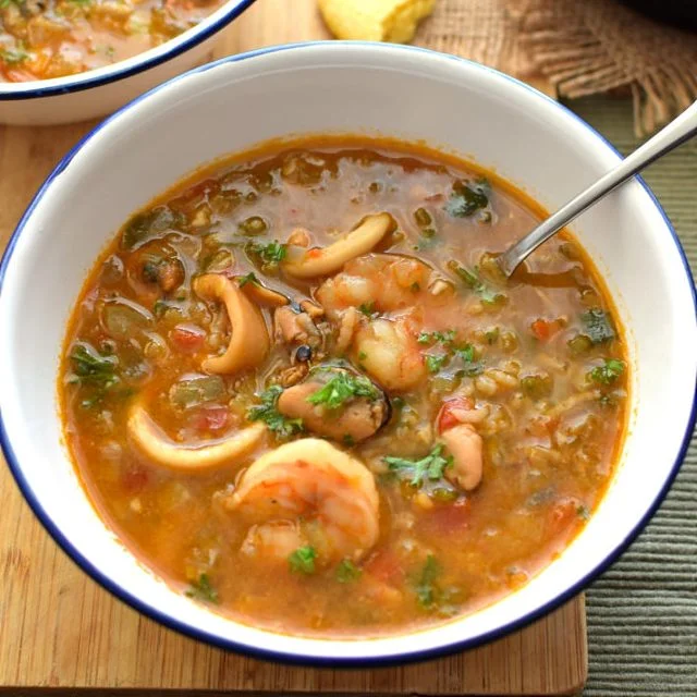 El asopado, en su esencia, es un arroz caldoso que se diferencia del risotto por su consistencia más líquida y el uso de un sofrito criollo. La magia de la versión carabobeña radica en la frescura de sus ingredientes. El plato combina una variedad de frutos del mar, como camarones, calamares, mejillones y pulpo, que se cocinan lentamente en un guiso a base de ají dulce, cebolla, pimentón y, a menudo, un toque de cilantro o perejil que resalta los sabores.