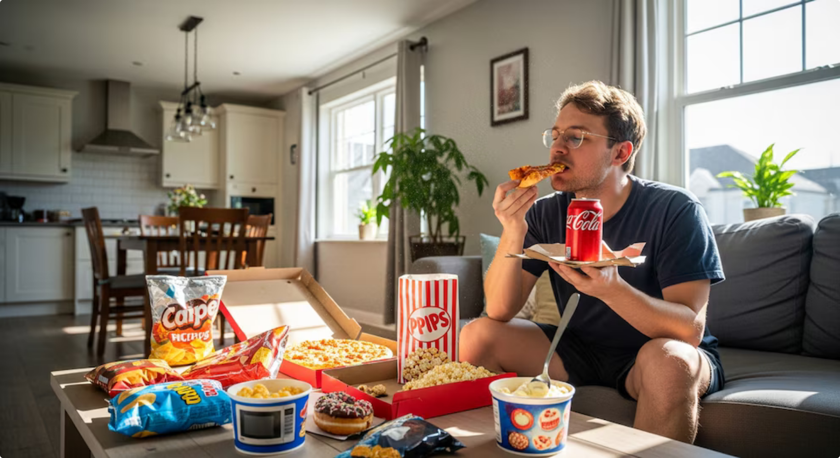 Los alimentos ultraprocesados suelen tener una vida útil más larga y pueden resultar muy atractivos y prácticos. Contienen una combinación de azúcar, grasa, sal y carbohidratos que afêctan el sistema de recompensa del cerebro, dificultando dejar de comerlos. Entre estos alimentos se incluyen cereales para el desayuno, margarinas y cremas para untar, aperitivos envasados, salchichas, refrescos y bebidas energéticas, dulces y postres, pizzas congeladas, comidas preparadas, panes y bollos envasados de producción masiva, todos ellos con ingredientes sintéticos.