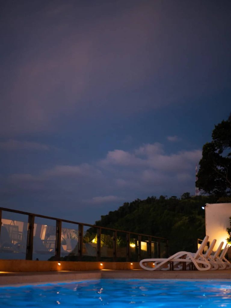 El deleite sensorial no termina en el descanso; la propuesta gastronómica y de esparcimiento de Bagbazindio es el broche de oro de cualquier estadía. Su piscina infinita, que parece fundirse con el azul del Atlántico, es el escenario perfecto para relajarse antes de disfrutar de una cocina de autor que destaca lo mejor del mar. Platos como el salpicón de mariscos, el churrasco de pescado fresco y las canastas de plátano rellenas.