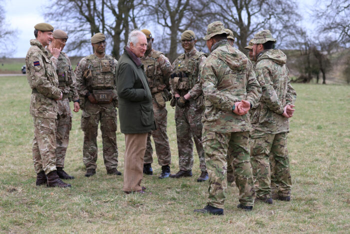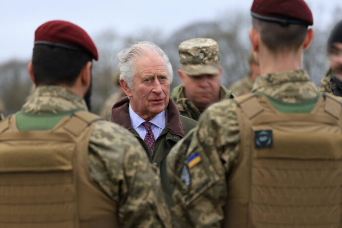 La visita ocurrió este 20 de febrero en el campo militar en Wiltshire, Gran Bretaña, donde el rey se reunió con reclutas militares ucranianos que entrenan en Inglaterra.