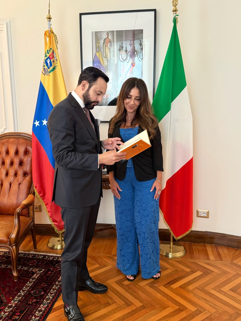 Durante su visita, el autor fue recibido por la Embajadora de Venezuela en Italia, María Elena Uzzo, así como por el Encargado de la Oficina Consular, Luis Martínez, y el Consejero Ernesto González. La calidez y el interés de los funcionarios por el tema del libro fueron destacados por el autor.
