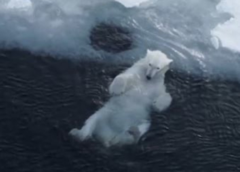 El fotógrafo destacado, Florian Ledoux, registró el tierno momento de un oso polar divirtiéndose en el agua.