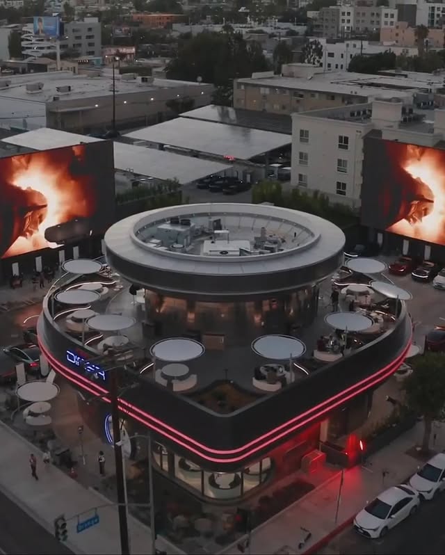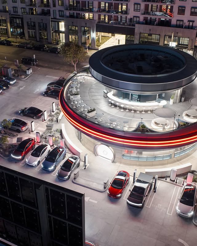 Abierto las 24 horas, el restaurante ofrece un menú que reinventa clásicos estadounidenses. Creaciones como hamburguesas con “salsa eléctrica” o pollo frito acompañado de waffles son obra del chef Eric Greenspan. Además, el lugar está equipado con 80 supercargadores para vehículos Tesla y utiliza paneles solares para alimentar parte de sus sistemas, reforzando su sello ecológico.