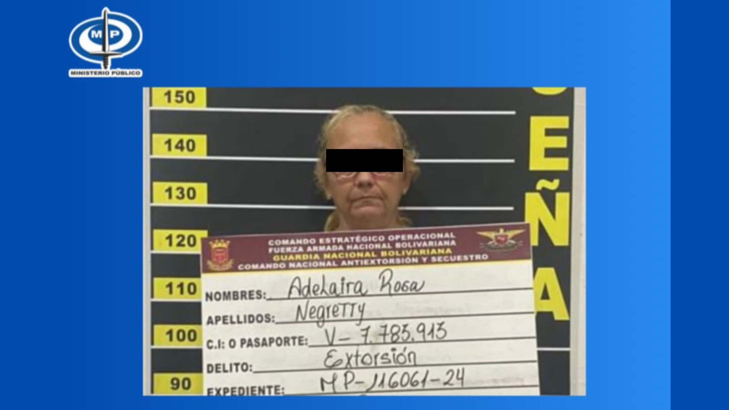 El Fiscal General de la República, Tarek William Saab, informó que el Ministerio Público del estado Zulia logró una sentência condęnatoria de 13 años y 4 meses de prïsión cönträ la ciudadana Adelaida Negretty, tras comprobarse su responsabilidad en delitøs vinculados a extørsión.