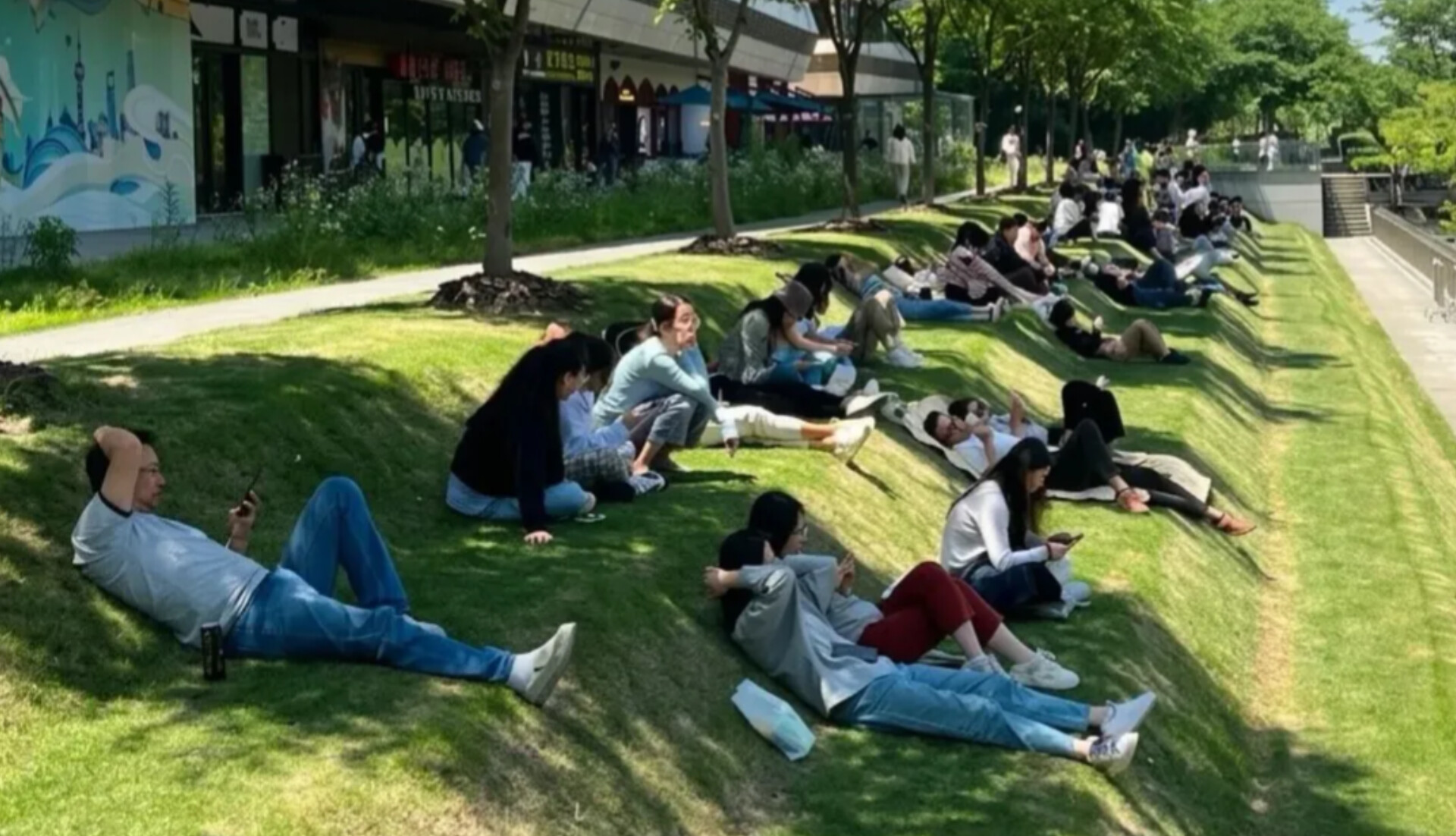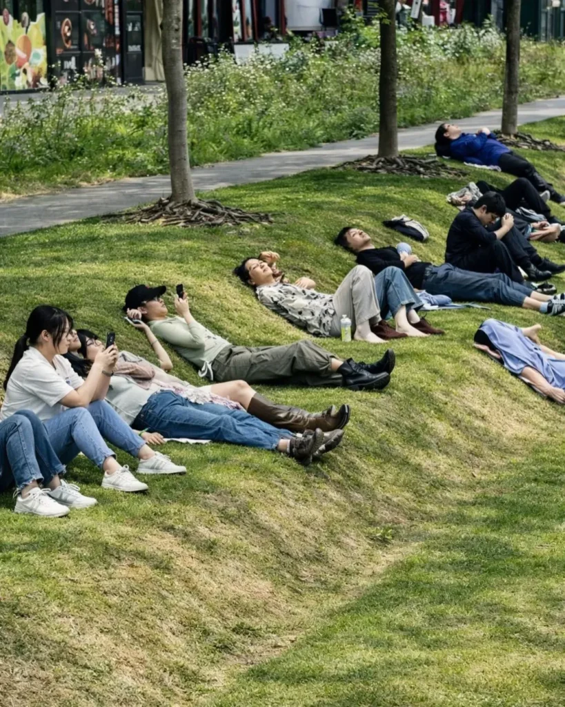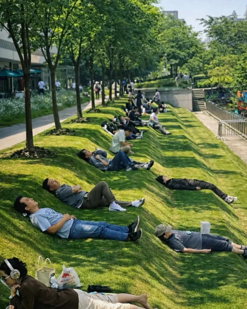 En la ciudad de Shanghái, China, un parque urbano ubicado en el distrito de Xuhui se ha vuelto viral en redes sociales por un inusual fenómeno: trabajadores que aprovechan el espacio para acostarse y tomar siestas durante la jornada laboral.