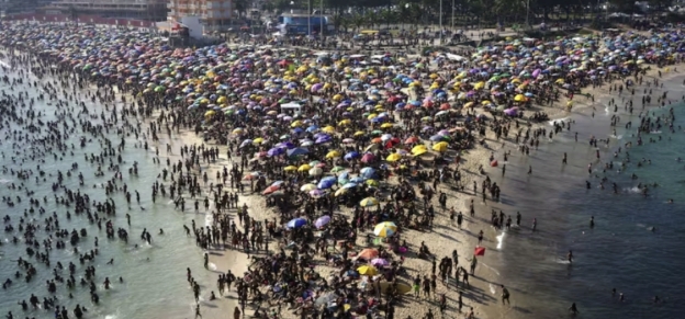 Las emblemáticas playas de Ipanema y Copacabana lucían repletas, mientras las autoridades publicaban consejos para sobrellevar el calor.