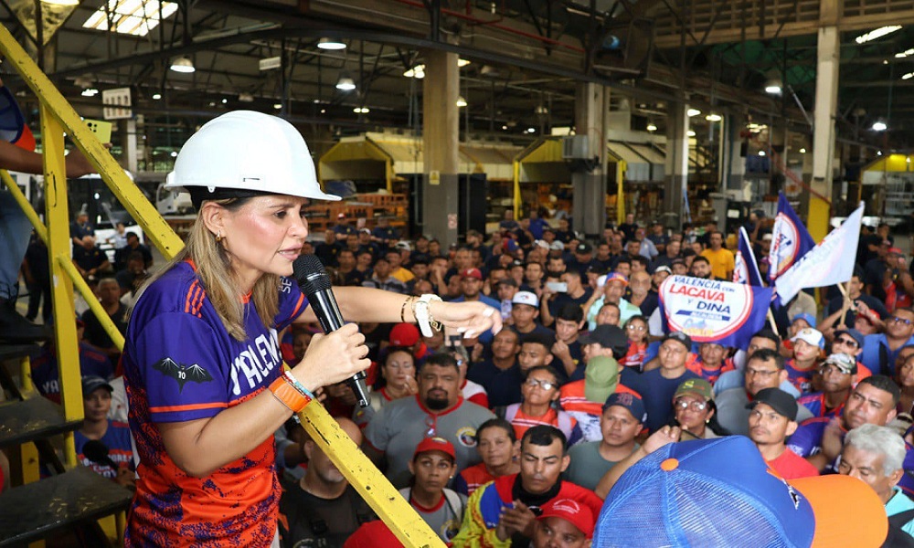 Tras el recorrido por la planta de ensamblaje de Encava, la candidata Dina Castillo, sostuvo un encuentro con los trabajadores y trabajadoras de Valencia, a quienes les reiteró su confianza y compromiso para dar respuesta a las necesidades y reivindicaciones de la clase obrera, con el objetivo de impulsar el desarrollo integral del municipio, para asegurar mejores condiciones laborales, servicios públicos eficientes y una mayor participación de la fuerza productiva en las decisiones locales.