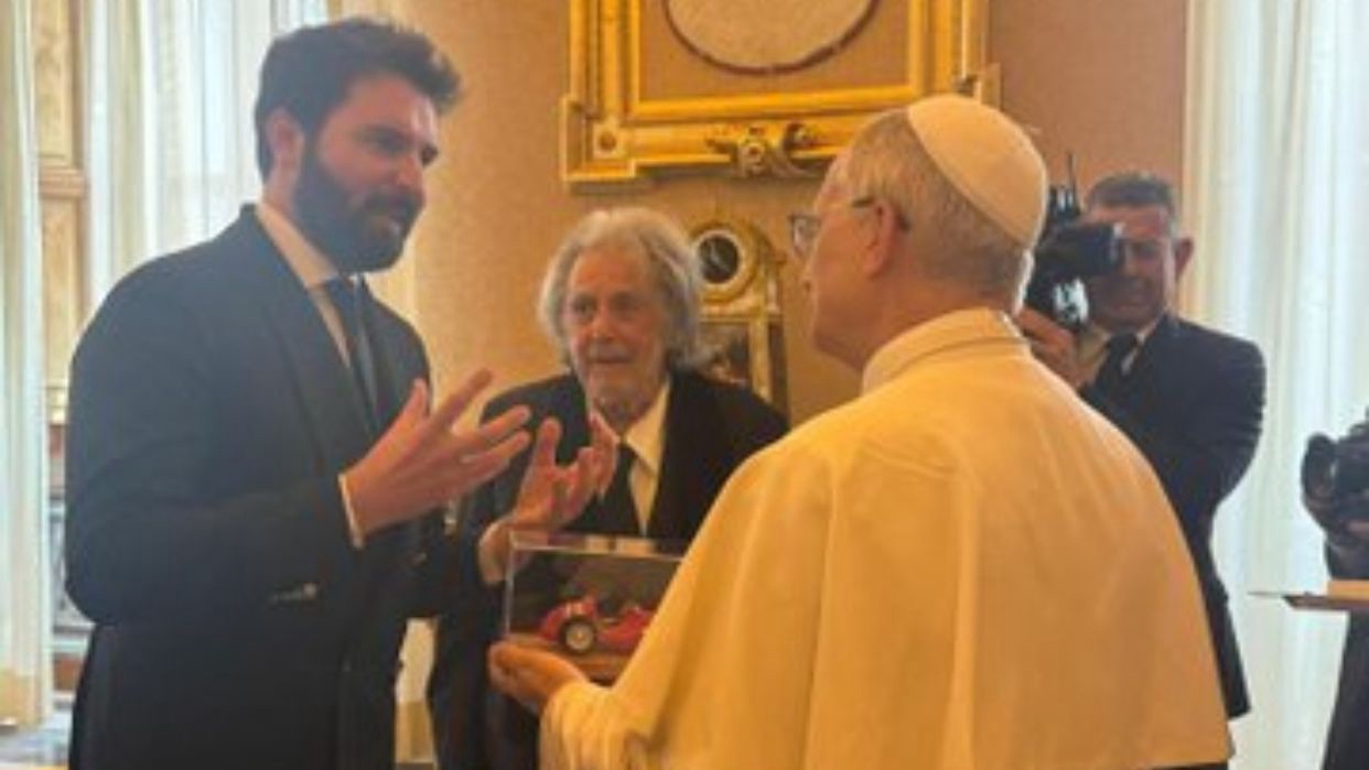 Al Pacino, de 85 años, asistió a la audiencia acompañado de parte del elenco de la próxima película sobre la historia de la icónica casa automovilística Maserati. En este film, el legendario actor interpreta a un empresario clave en los inicios de la compañía italiana. Este proyecto cinematográfico, que actualmente se está rodando en Italia, ha sido el motivo de la visita de la delegación a la capital italiana.