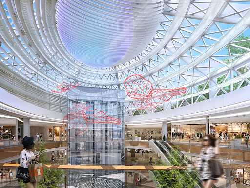 Posee además nueve pisos hacia el cielo y cuatro niveles subterráneos para el esparcimiento de los visitantes.