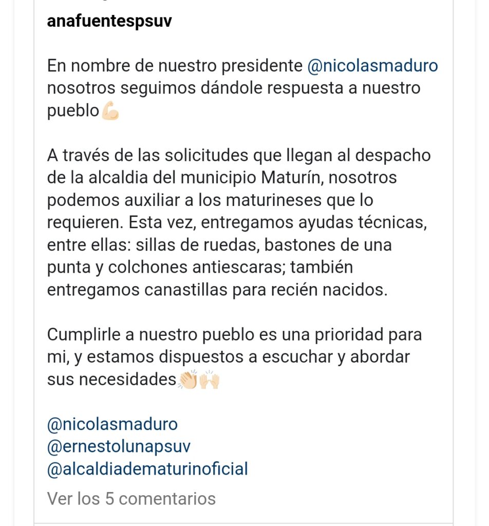 «A través de las solicitudes que llegan al despacho de la alcaldía del municipio Maturín, nosotros podemos auxiliar a los maturineses que lo requieren», indicó.