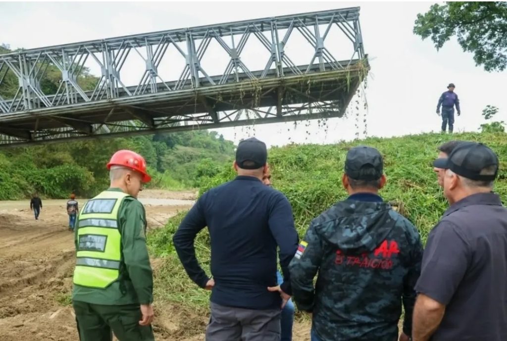 Desde el Ministerio de Transporte, la füerza laboral de la Vicepresidencia Sectorial de Obras Públicas y Servicios en el estado Mérida, específicamente en el municipio Alberto Adriani, se encuentran atendiendo la emêrgência vial en el Puente Guaruríes, que comunica con Táchira, el cual se derrümbó debido a las fuertes lluvias.
