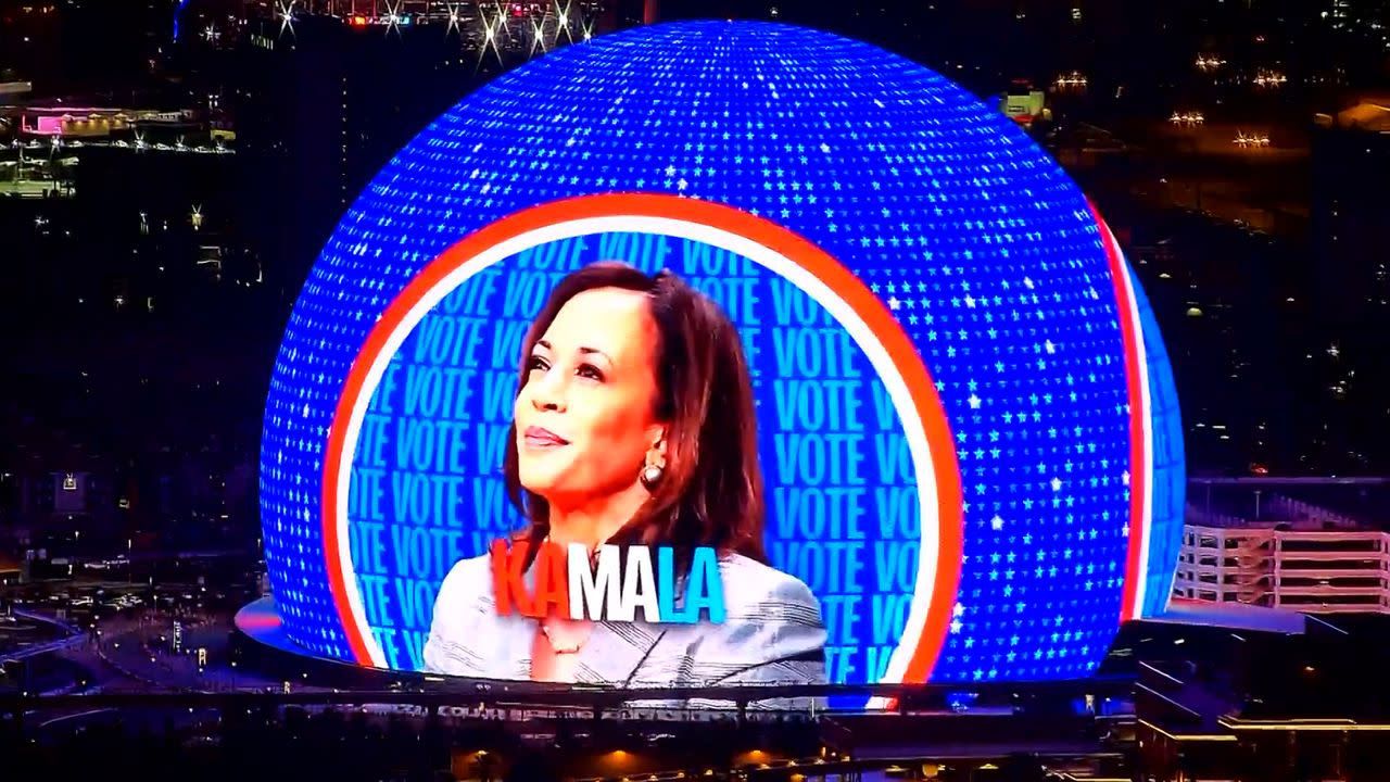 La vicepresidenta estadounidense y candidata demócrata a la Casa Blanca, Kamala Harris, ha llevado su campaña hasta la Esfera de Las Vegas, que en esta recta final antes de los comicios del 5 de noviembre aparecerá iluminada con su nombre, su imagen y esa fecha clave.