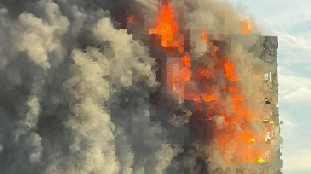 Las imágenes grabadas por testigos presenciales muestran la magnitud del incendio, con las llamas devorando los pisos superiores del edificio y una densa humareda negra que se eleva hacia el cielo.