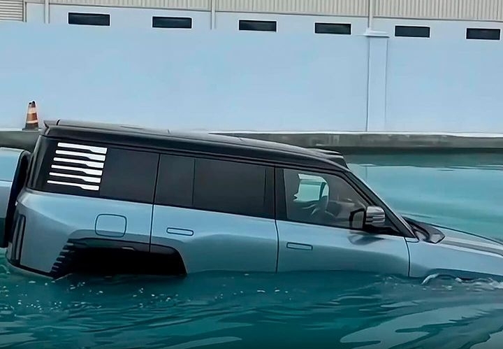 Un video muestra el vehículo eléctrico chino en acción mientras su propietario le permite sumergirse con confianza casi hasta las ventanillas.