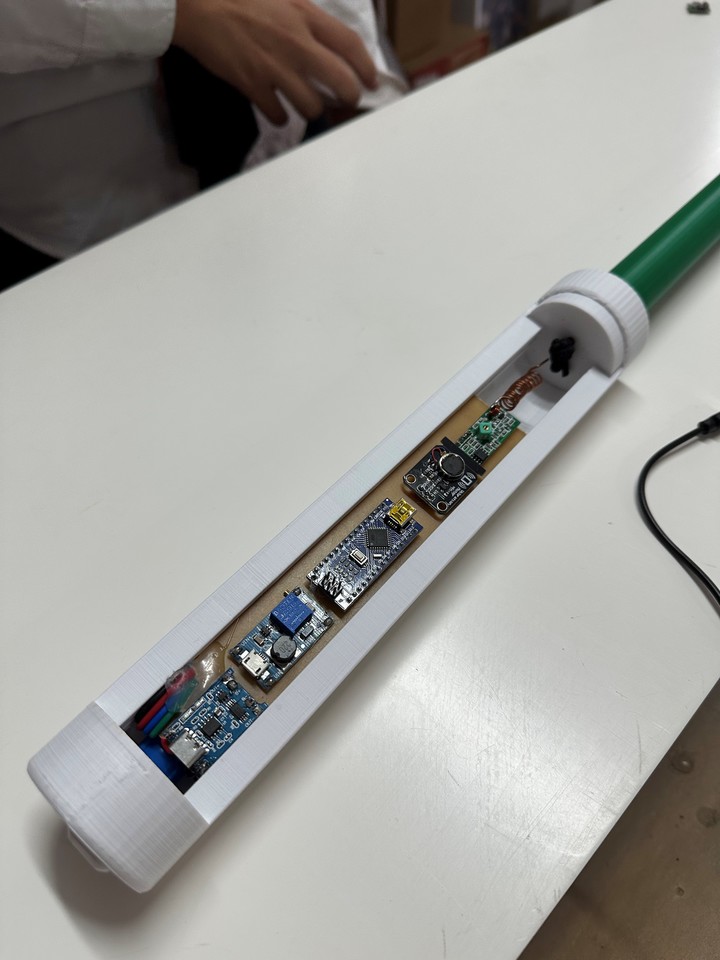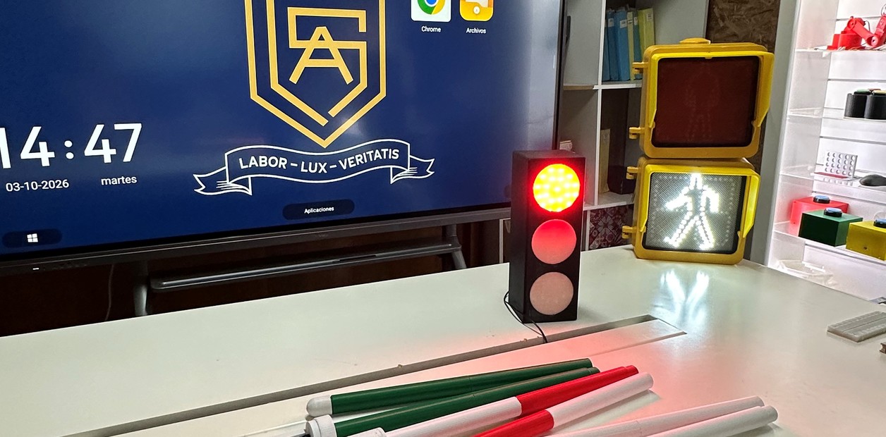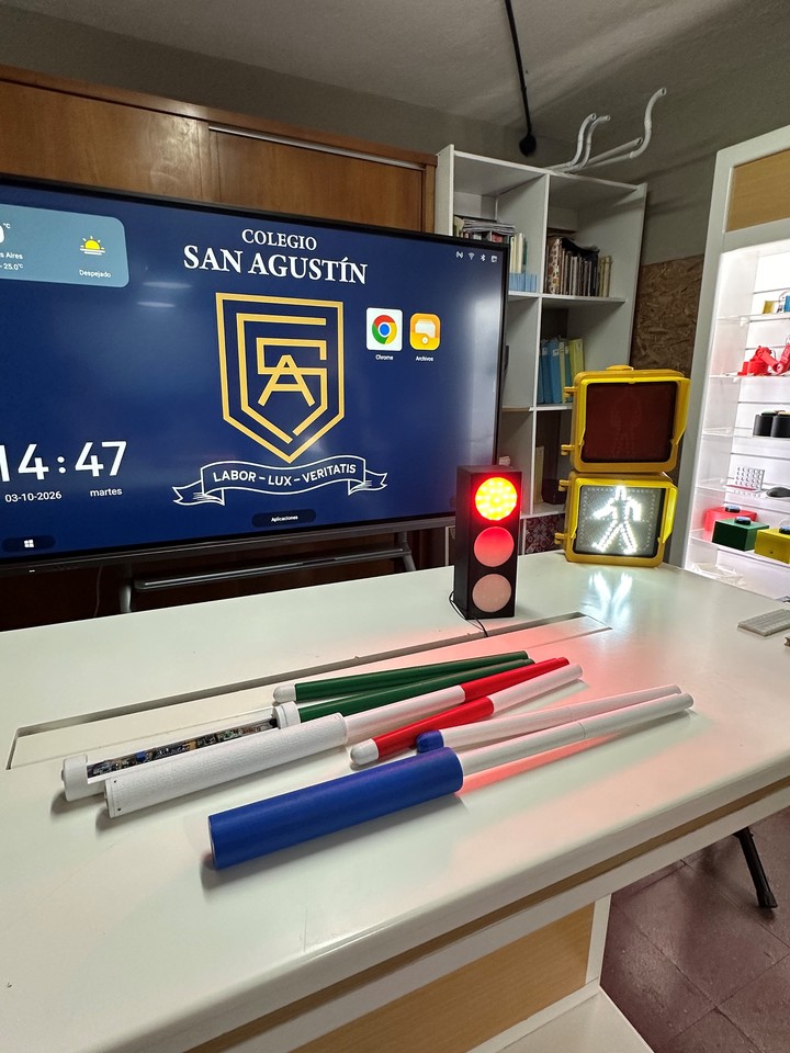 Frente a eso, los estudiantes desarrollaron un sistema simple: un bastón inteligente que se conecta con los semáforos peatonales. Cuando el semáforo está en rojo, el bastón vibra y le avisa al usuario que debe esperar. cuando cambia, la vibración se detiene. Para armarlo, utilizaron tecnologías accesibles como Arduino, módulos de radiofrecuencia y piezas fabricadas con impresión 3D en la misma escuela. El dispositivo fue probado en distintas situaciones, incluso con una persona ciega, y funcionó de manera clara y efectiva.