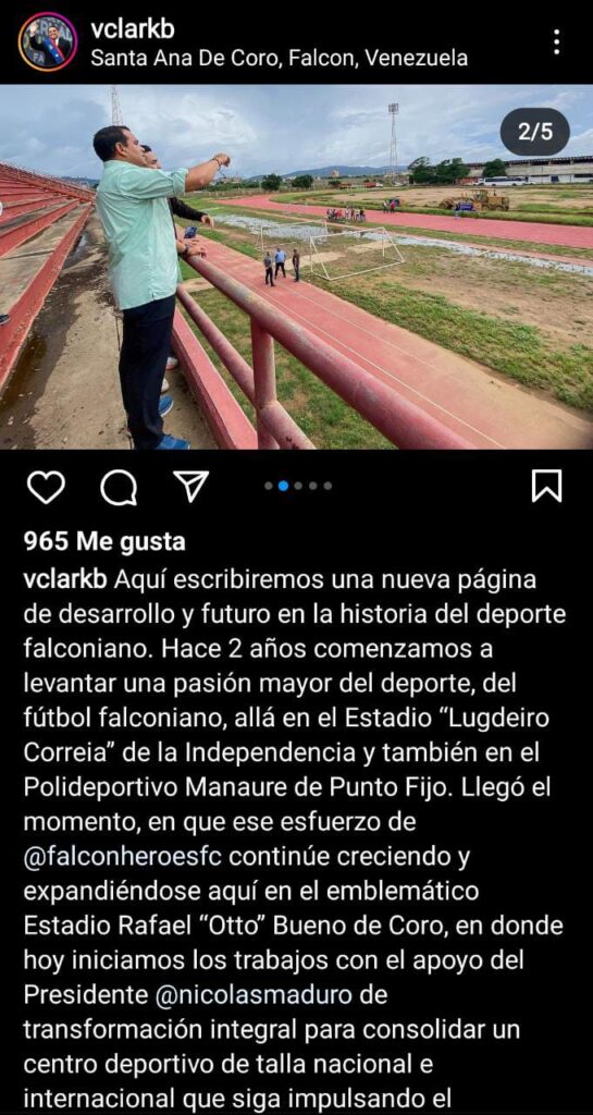 Víctor Clark Boscán, gobernador del estado Falcón, informó a través de su cuenta oficial en Instagram, que el durante el próximo año 2023, podrá ser inaugurado el emblemático Estadio Rafael “Otto” Bueno de Coro.