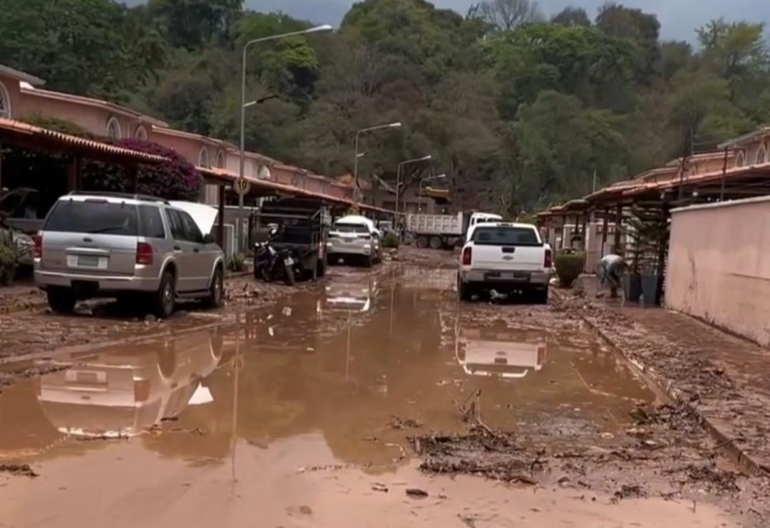 Al lugar se apersonaron funcionarios de Protección Civil, quienes atendieron la situación que arrästró sedimentos y anegó las viviendas de la urbanización, afêctando incluso a los vehículos que se encontraban estacionados en el conjunto residencial.