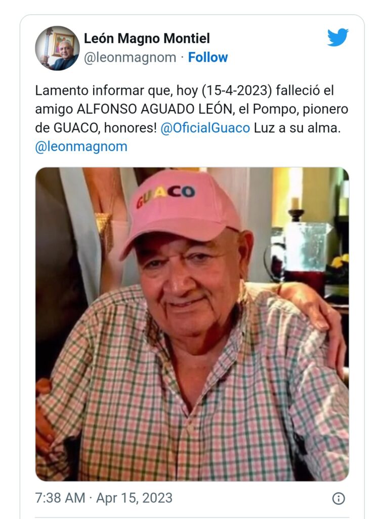 La mañana de este sábado 15 de abril, se conoció del fallecimiento del fundador de la súper banda de Venezuela «Guaco», Alfonso Aguado León, conocido como «El Pompo».