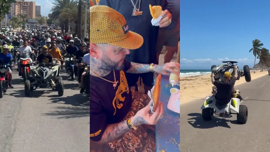 La jornada de inmersión local continuó con un recorrido en cuatrimoto por las calles principales de la isla, donde Farruko se unió a una caravana de motociclistas locales. Durante este trayecto, el boricua no ocultó su emoción y describió a Venezuela como un «paraíso incomparable», llegando a manifestar su deseo de mudarse al país debido a la calidez y resiliencia de su gente.