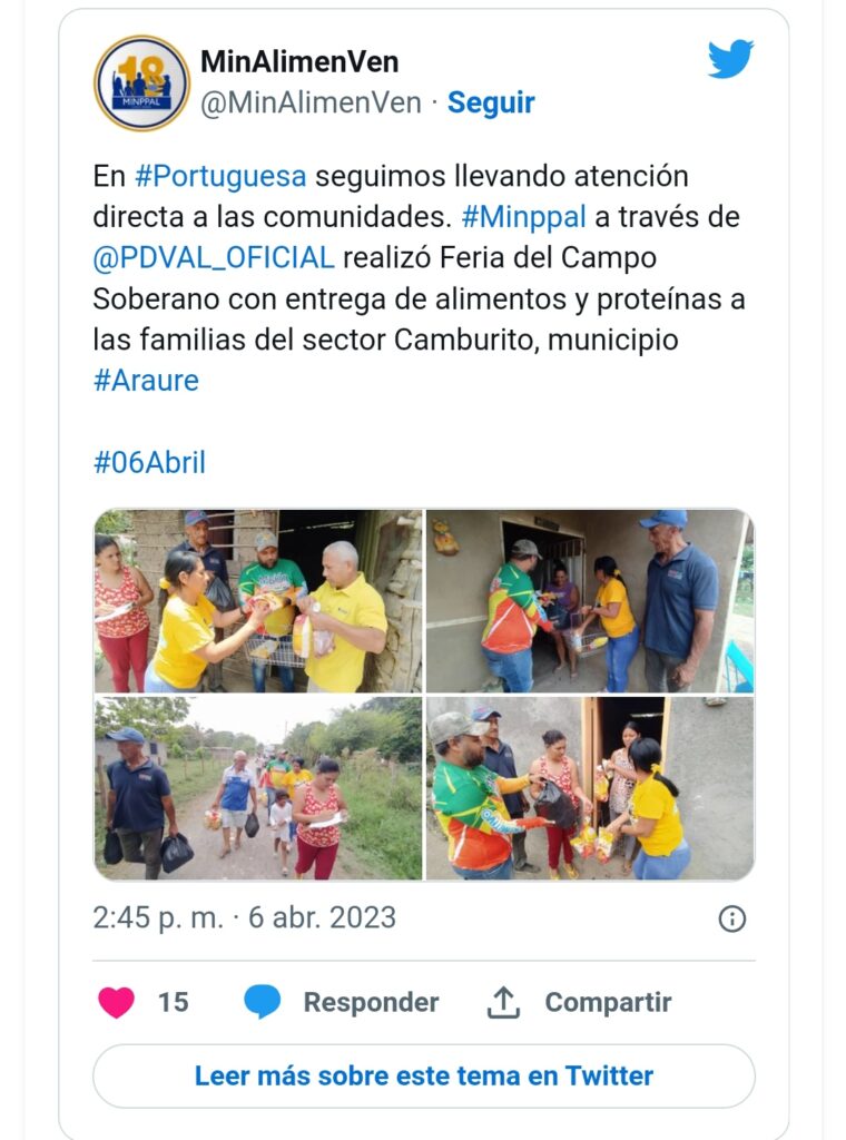 La información se dio a conocer de acuerdo a una serie de mensajes publicados en la cuenta oficial del Ministerio @MinAlimenVen, donde resaltan el cumplimiento al Plan Nacional de Distribución de Proteínas para la suma felicidad del pueblo.