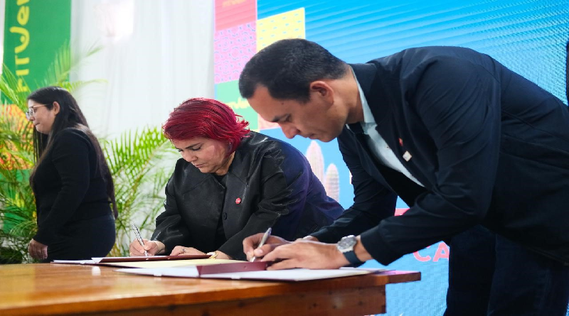 Con el objetivo de establecer los términos y condiciones para regular el intercambio y asistencia técnica en materia de propiedad intelectual, la ministra para el Turismo, Leticia Gómez, firmó un convenio con su par de Comercio Nacional, Luis Villegas, durante el desarrollo de la XVIII edición de la Feria Internacional de Turismo de Venezuela (Fitven) 2025 en la ciudad de Puerto Cabello, estado Carabobo.