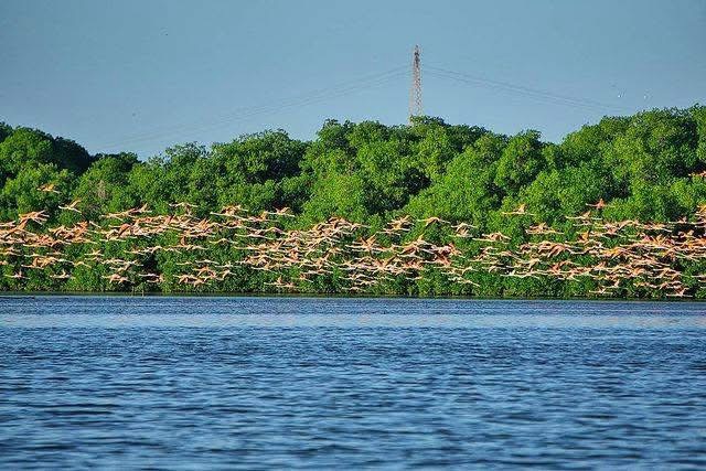 El espectáculo natural más llamativo es protagonizado por el flamenco o flamingo. Estas aves migratorias llegan desde Centroamérica por períodos de tres meses para alimentarse. Su distintivo color rosado se debe a la absorción de una bacteria producida por los peces y los camarones que consume. Además de los flamencos, la laguna es un refugio importante para garzas blancas, grises, corocoros, patos y pelícanos.