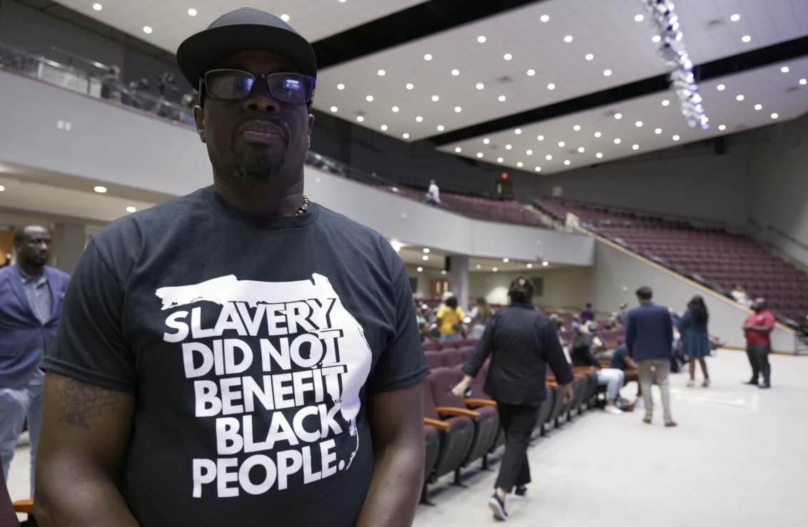 “Estos nuevos estándares estatales que ha presentado DeSantis no serán tolerados en nuestras escuelas. No dejaremos que a nuestros hijos se les enseñe que los esclavos se beneficiaron de su esclavitud. Esa es una mentira”, dijo el organizador de la protesta Marvin Dunn, profesor emérito de psicología en la Universidad Internacional de Florida.