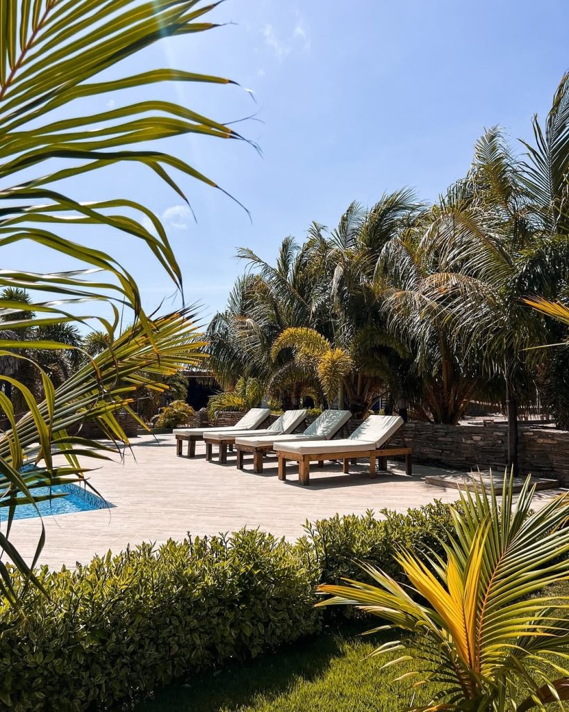 Dentro de sus espacios, los huéspedes pueden disfrutar de momentos de relajación en las tumbonas junto a la piscina, tomar un refrescante baño o simplemente deleitarse con las impresionantes vistas al mar.