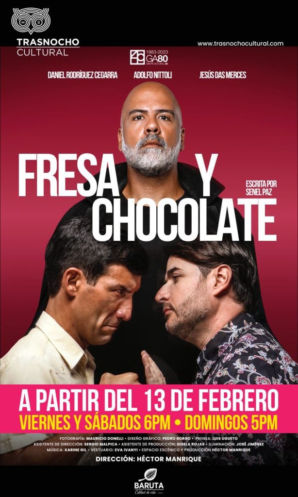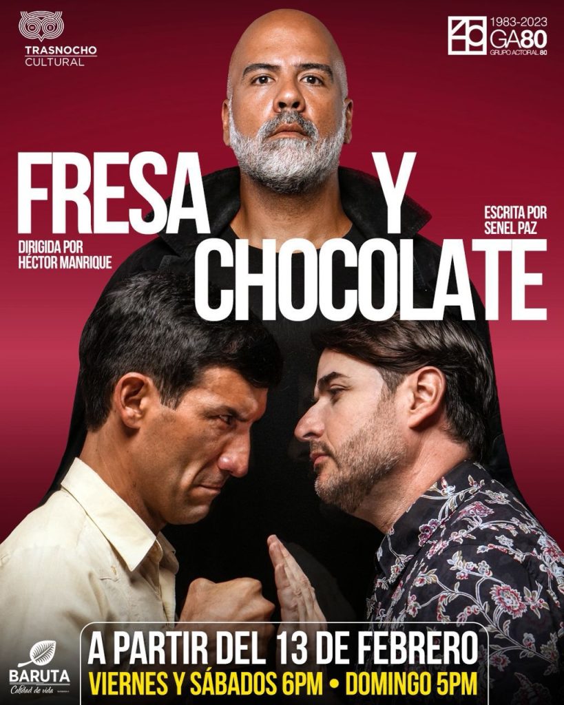 El Grupo Actoral 80 retoma Fresa y Chocolate, la reconocida comedia dramática del escritor cubano Senel Paz, en una nueva temporada en el Teatro Trasnocho a partir del viernes 13 de febrero. Bajo la dirección de Héctor Manrique y con las actuaciones de Daniel Rodríguez, Adolfo Nittoli y Jesús Das Merces, el montaje vuelve a escena como una reflexión vigente sobre la convivencia humana en contextos marcados por la intolerancia.
