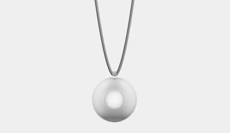 Este dispositivo es un pequeño colgante que funciona como un chatbot y se comunica mediante mensajes de texto y notificaciones push en el teléfono vinculado del cliente.