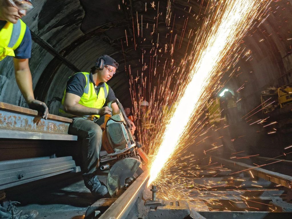 Un equipo multidisciplinario conformado por 26 especialistas llevó a cabo el reemplazo de 35,40 metros de barras de rodamiento que habían cumplido su ciclo de vida útil. Para garantizar la integridad y continuidad de la vía, se emplearon técnicas avanzadas de soldadura aluminotérmica, asegurando un desplazamiento más fluido de los trenes Metropolis.