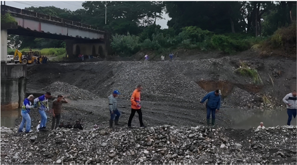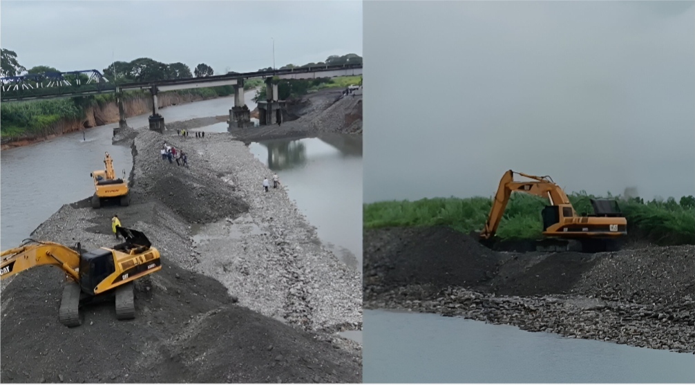 Como parte de los trabajos para la posterior construcción de defensas, también se realiza la canalización del río. Esto para prevenir y protección del puente que ya ha sido atendido por la Gobernación.