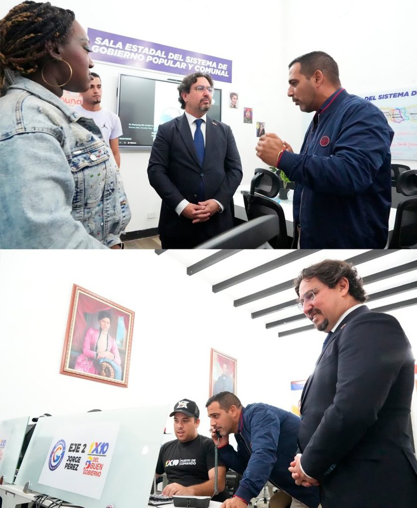 En el recorrido el Gobernador le mostró el funcionamiento de la Sala de Gobierno Comunal y del 1×10 del Buen Gobierno, herramientas que han permitido dar respuesta a las necesidades de las comunidades del estado La Guaira.