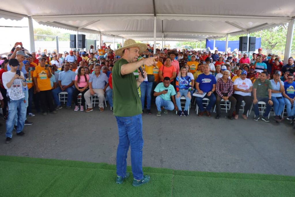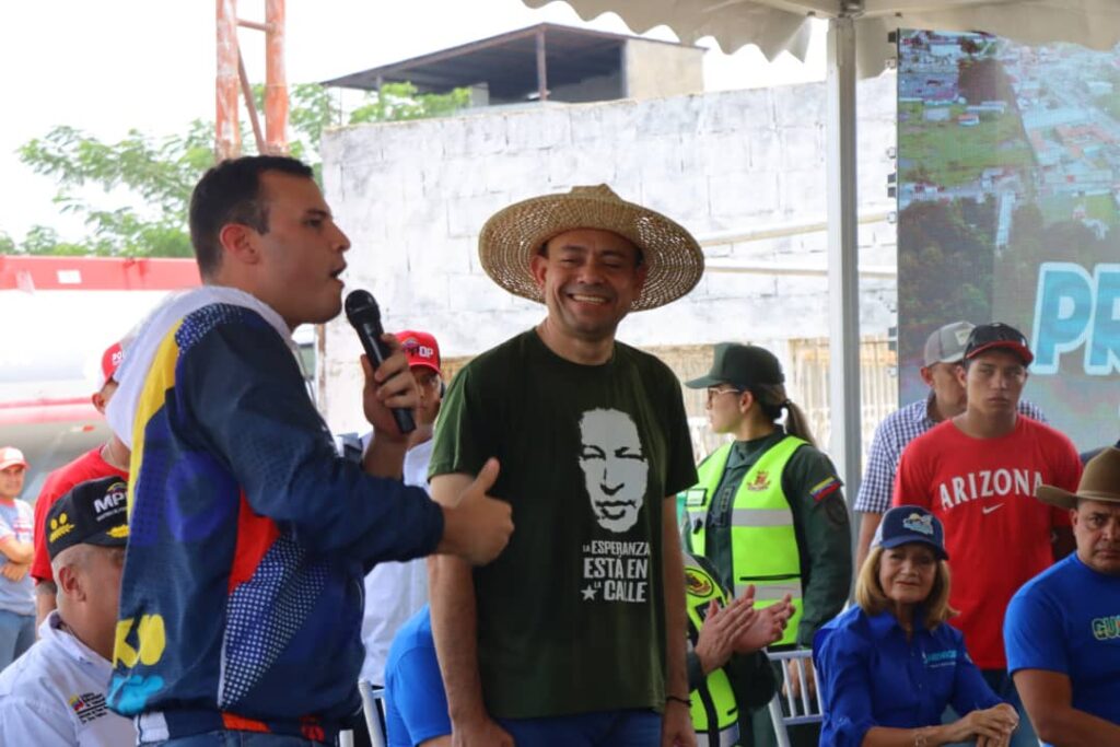 El gobernador Primitivo Cedeño junto al ministro Raúl Paredes en Guanarito, acompañados de Leonardo Montezuma, jefe del puesto de comando nacional 1×10 Buen del Gobierno.
