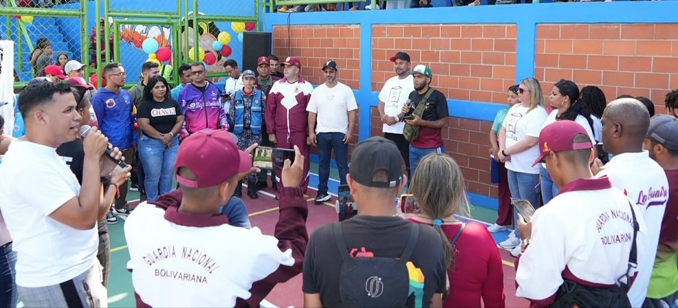 «Seguimos apostando por el deporte, y por eso nuestra muchachada de Vista al Mar ahora podrá disfrutar de su cancha totalmente acondicionada con nuevos aros, arcos y gradas gracias a la intervención que ha hecho nuestra gloriosa Guardia del Pueblo», expresó el mandatario regional.