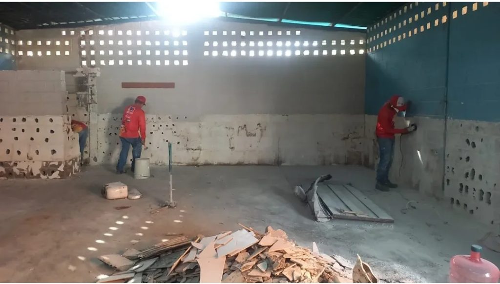 Es importante mencionar que se esta realizando el desmontaje de techo, demølición del antiguo incinerador, remoción de cerámicas en paredes y de piezas sanitarias, botes de escombros desinstalación de tuberías y más.