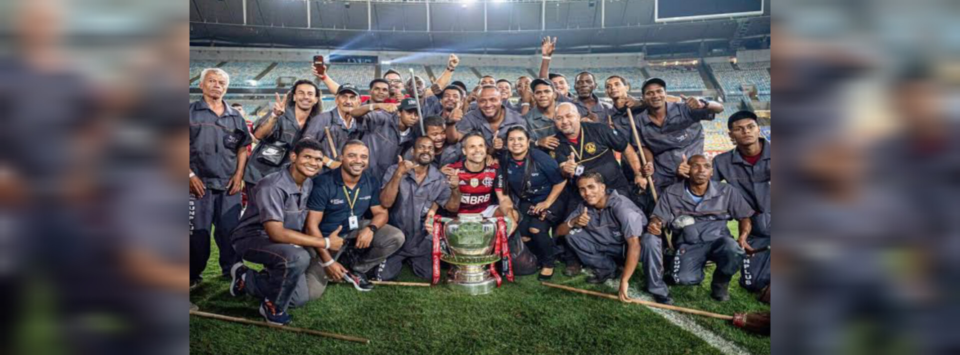 El Flamengo se coronó campeón de la Copa brasileña el pasado miércoles tras vencer en penales (6-5) al Corinthians. Al conseguir la hazaña, el equipo y los aficionados protagonizaron emotivos momentos, aunque uno en particular se robó los reflectores: el capitán, Diego Ribas, compartió el título con el personal de limpieza del estadio Maracaná, fue protagonista de un gesto que se volvió viral’.