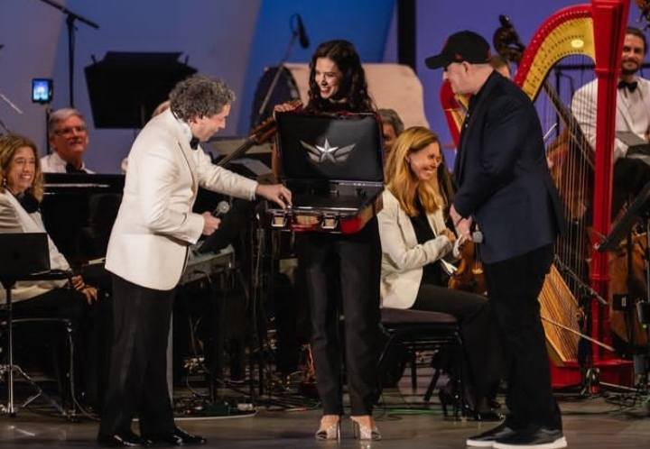 Durante su presentación Dudamel recibió una batuta de plata de manos de Kevin Feige por dirigir el concierto Infinity Saga en el Hollywood Bowl el pasado sábado 31 de agosto.