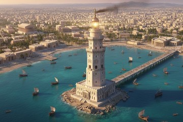 El Faro de Alejandría fue construido en el siglo III a.C. y durante siglos sirvió como guía para navegantes del Mediterráneo. Además de su función marítima, representó poder, innovación y grandeza arquitectónica en la ciudad fundada por Alejandro Magno.