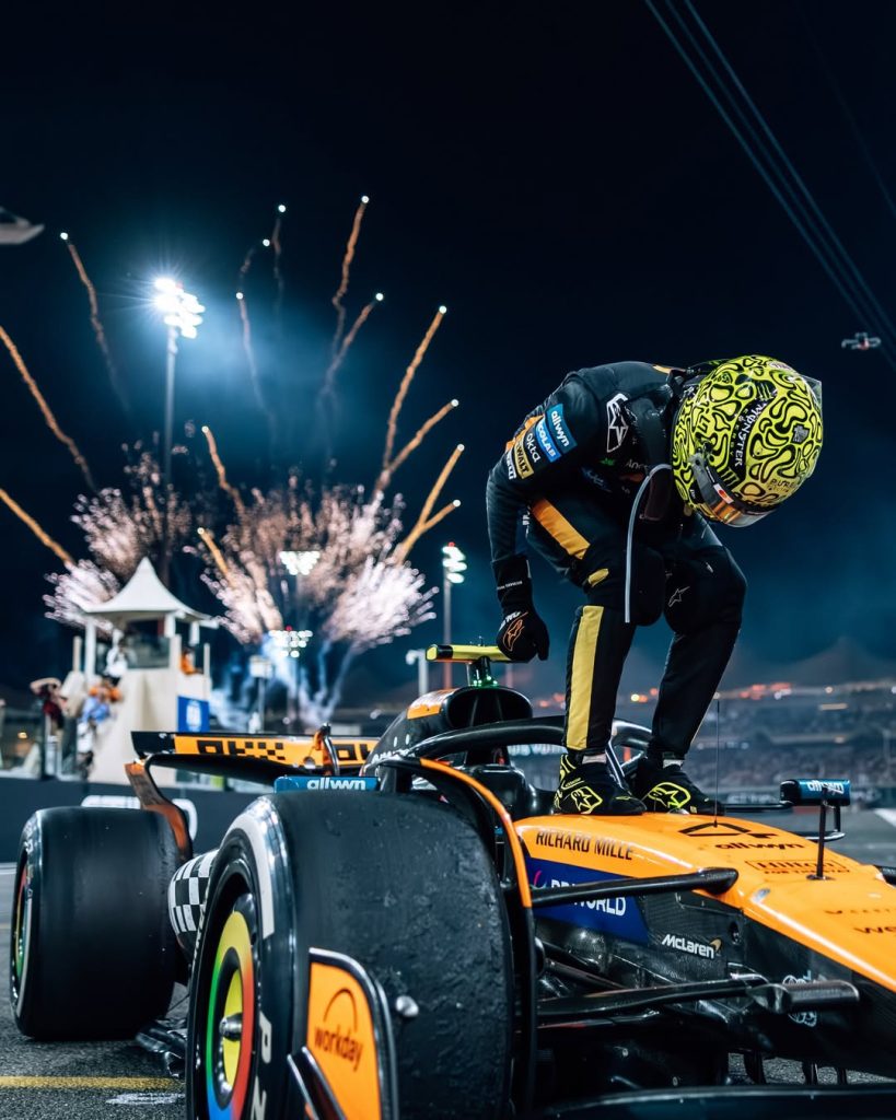 El piloto británico Lando Norris de McLaren, se proclamó por primera vez campeón del mundo de Fórmula 1 al conseguir el tercer puesto en el Gran Premio de Abu Dabi. Pese a que la victoria de la carrera fue para el neerlandés, Max Verstappen (Red Bull), el piloto de 26 años, gestionó la prêsión y aseguró el resultado suficiente para levantar la corona.