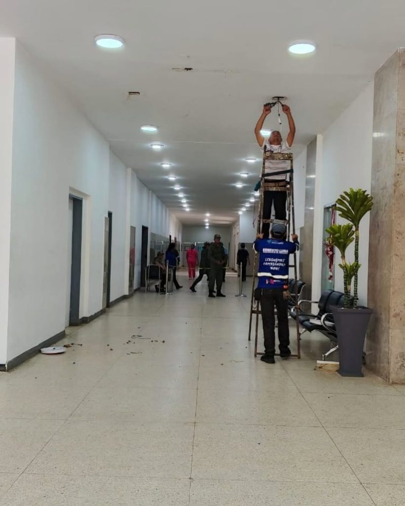 En el marco del plan de recuperación, se ejecutó una fase intensiva de iluminación que incluye la instalación de luminarias de alta eficiencia en el pasillo principal de planta baja, zona de mayor tránsito, y la dotación de nuevas lámparas en los pasillos que conducen al área de consultas externas, conocida como Las Casitas.