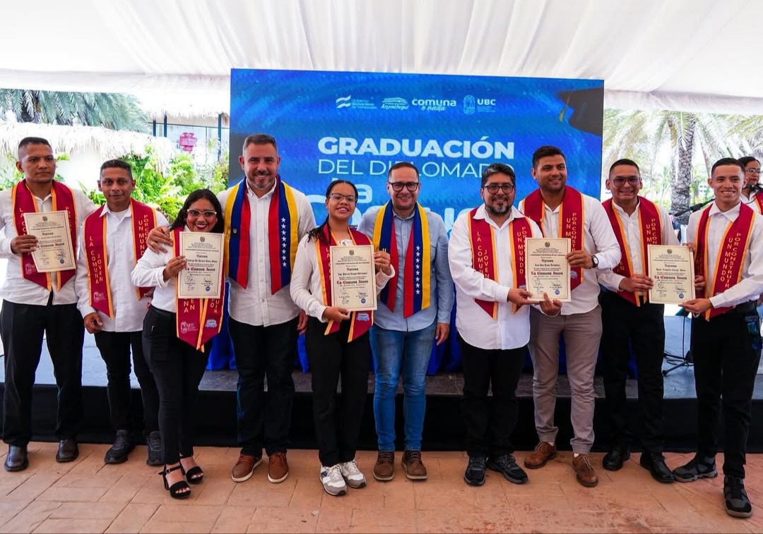 El gobernador del estado Anzoátegui, Luis Marcano acompañó la graduación junto al ministro del Poder Popular para la Educación Universitaria Ricardo Sánchez, el rector de la Universidad Bolivariana de las Comunas, Richard Delgado, la coordinadora Estadal de la UBC África Castillo, y el jefe del Gabinete de Organización Ciudadana y Comunal Angel García.