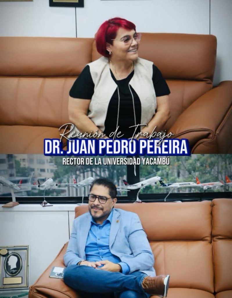 La ministra del Poder Popular para el Turismo, Leticia Gómez, sostuvo un fructífero encuentro con el Dr. Juan Pedro Pereira, Rector de la Universidad Yacambú (@universidadyacambu_oficial). La reunión se centró en la importancia de fortalecer la capacitación y formación del talento humano dentro del sector turístico venezolano.