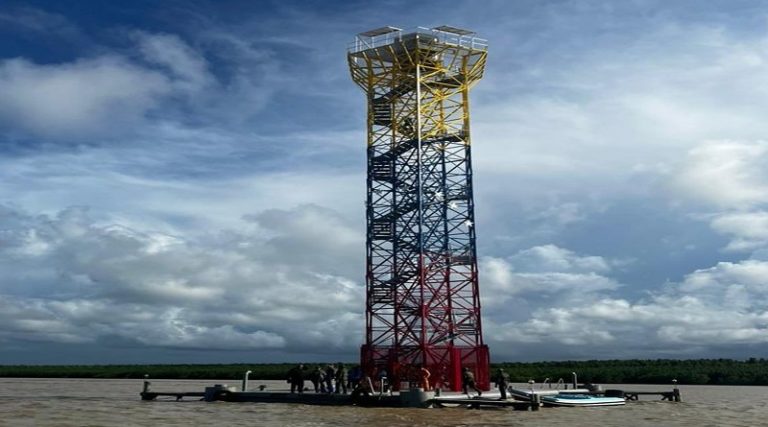 Asimismo, detalló que la estructura cuenta con 10 pisos de altura y 70 metros de profundidad, por lo que “todo aquel navegante que se encuentre en la proyección marítima de nuestro Esequibo, tendrá la seguridad que genera un faro venezolano y, por eso su puesta en funcionamiento es estratégica porque le permite saber al navegante donde se encuentra”.